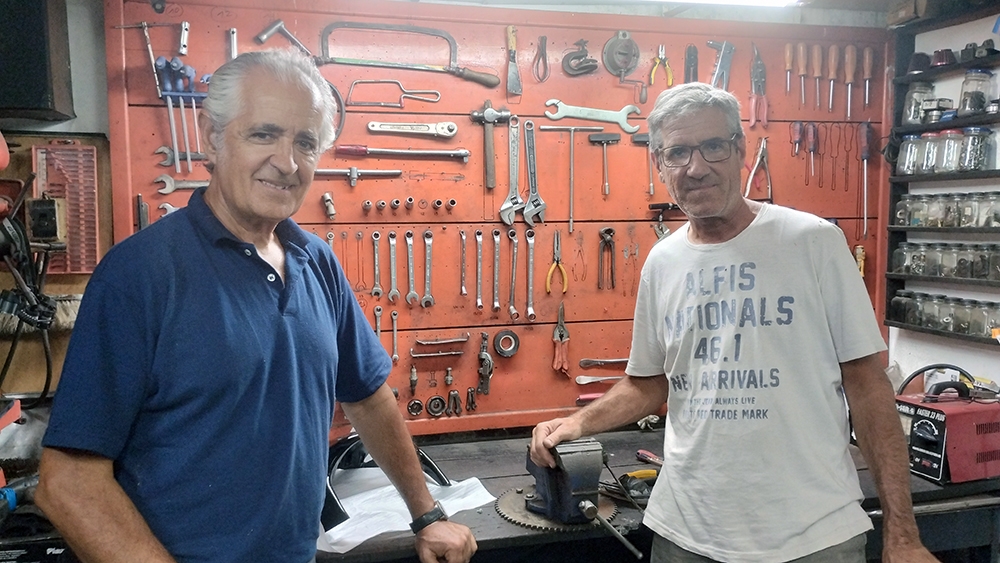 Diego, en el negocio no está solo. Además de verlo a Martín armar y desarmar su moto de carrera, se sumó al trabajo su hermano Germán, “ya hace más de 20 años que está conmigo. Él trabajaba en Buenos Aires, en un Banco y estaba acobardado de la vida de bancario, encima en Buenos Aires con toda la vorágine de esa gran ciudad. Yo necesitaba una mano, así que se vino para acá, estamos los dos, mano a mano, él se encarga del taller y yo de la venta”.